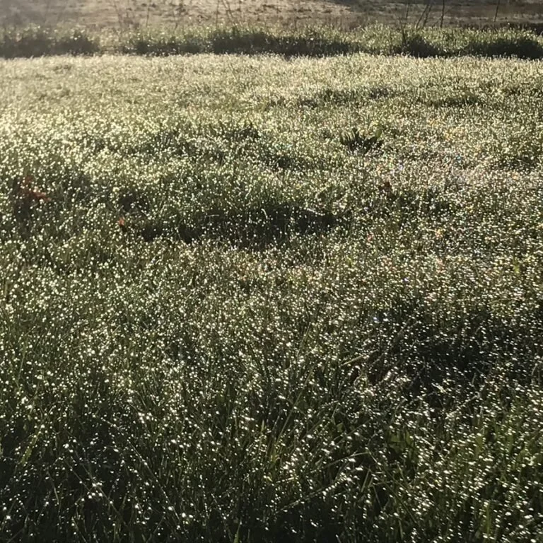 Today, I responded to the invitation to rise earlier. Stepping into the glistening world, I was brought to tears by the brilliance of the sun reflecting on and through drops of moisture on each blade of grass. Everywhere I looked, life teemed with freshness, possibility, and newness ~ and I recognized myself as an undeniable part of this whole. The recognition arises in my body and my heart – a knowing beyond language or belief. I am invited. Indeed, my full participation is required in the rising evolving Creation, holy one and sacred all.